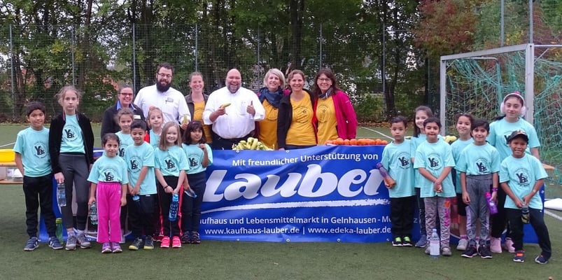 Als nächstes waren die Kleinsten an der Reihe und hier freuten sich unsere Organisatoren über jede Menge Zuschauer, die unsere Läuferinnen und Läufer anfeuerten. Zum Abschluss des Vormittages waren noch die Dritt- und Viertklässler an der Reihe und verblüfften die Erwachsenen ebenfalls mit hervorragenden Leistungen. Selbst unsere Sportlehrerinnen hätten nicht gedacht, wie überaus motiviert und leistungsbereit die Kinder Runde um Runde liefen. 4774 Runden (à 165m) kamen von 270 Kindern zusammen und alle bekamen noch am gleichen Tag eine Urkunde überreicht. Dank der großzügigen Spende des EDEKA-Marktes aus Meerholz wurden die Kinder nach dem Lauf mit frischem Obst versorgt und der ein oder andere meinte, so lecker hätten Äpfel noch nie geschmeckt!
